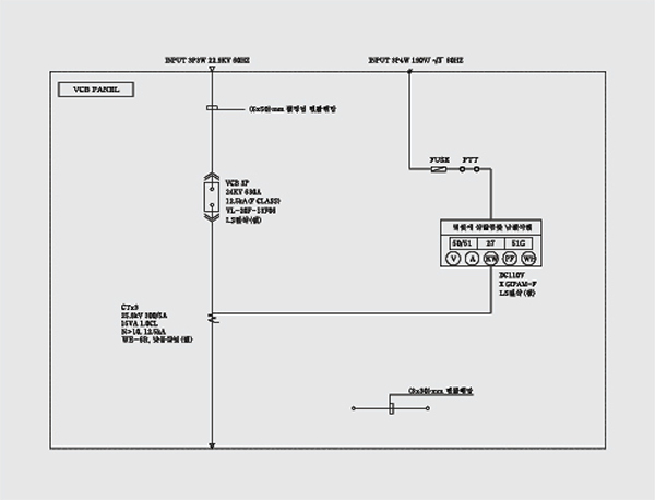 조명전원 공급을 위한 회로와 저압배전 계통의 용량에 적합한 동력을 위한 회로구성. (용량 및 현장 상태에 따라 달라질 수 있습니다.)